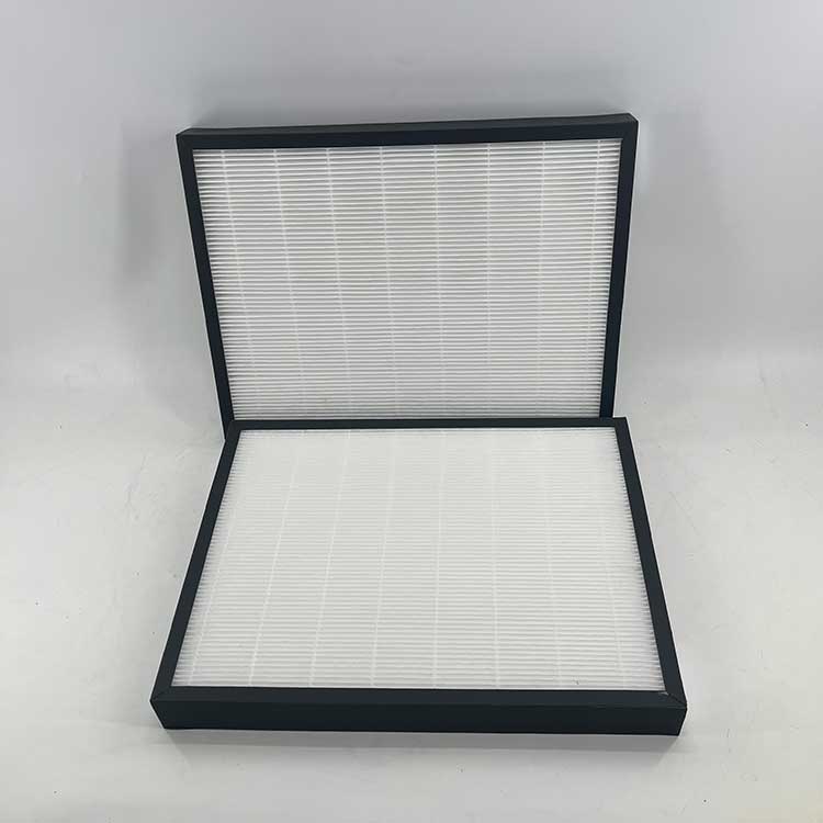 過濾材料是以折疊形式裝入高強度模切硬紙板內,迎風面積增大。流入的空氣中的塵埃粒子被過濾材料有效阻擋在褶與褶之間。潔凈空氣從另一面均勻流出,因此氣流通過過濾器是平緩和均勻的。視過濾材料不同,它所阻擋的粒徑從0.5μm到5μm而不同,過濾效率也不同 。